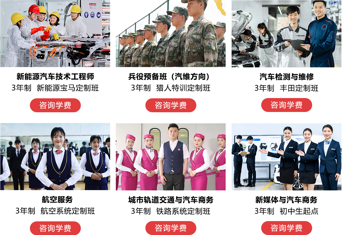 沈阳万通针对初高中生开设高端车、新能源、汽车检测维修、轨道交通、汽车新媒体等专业。
